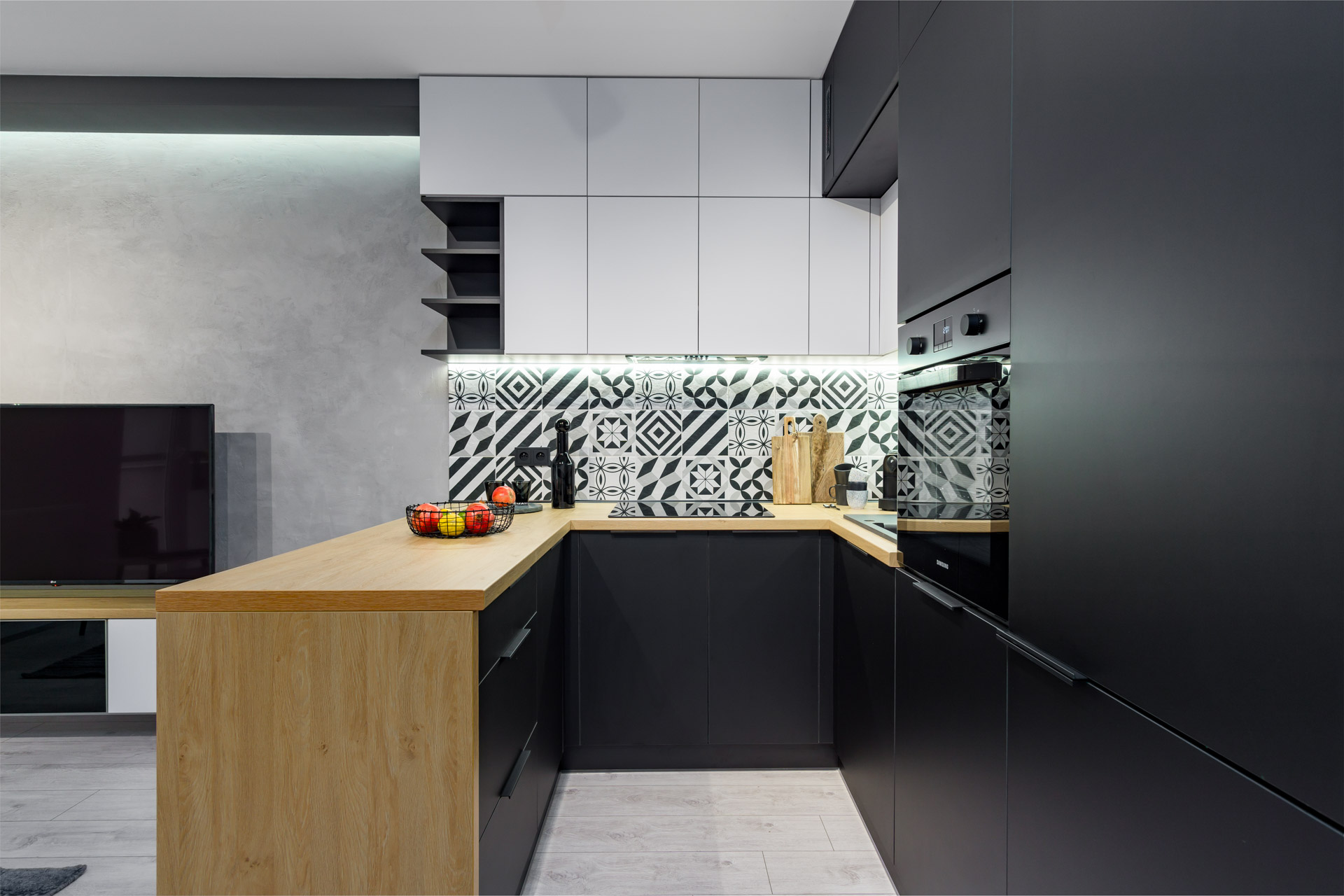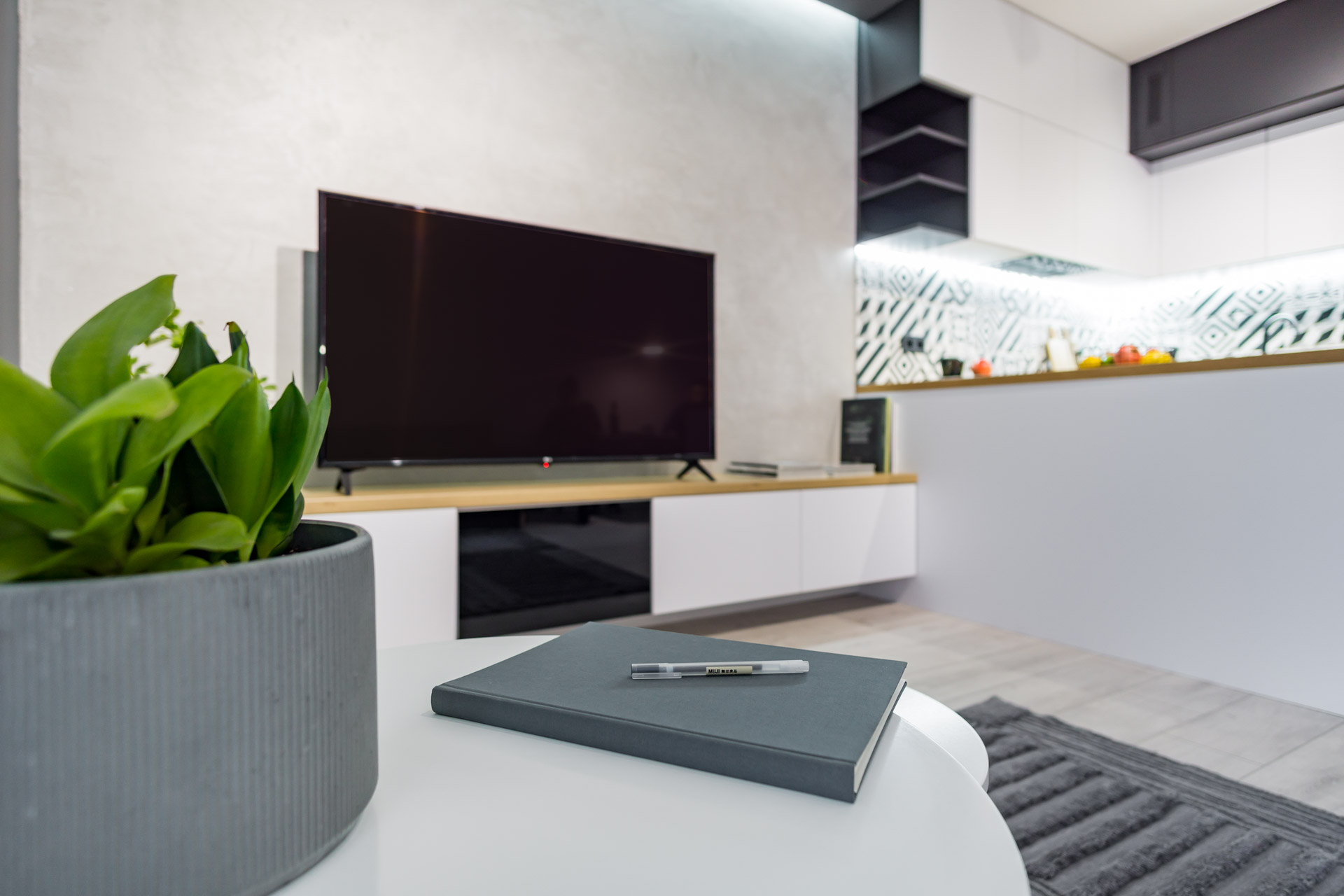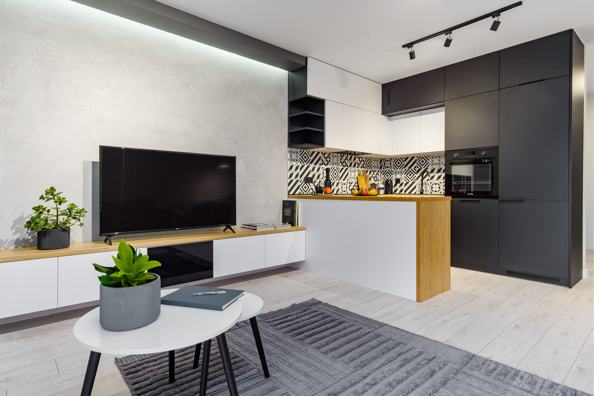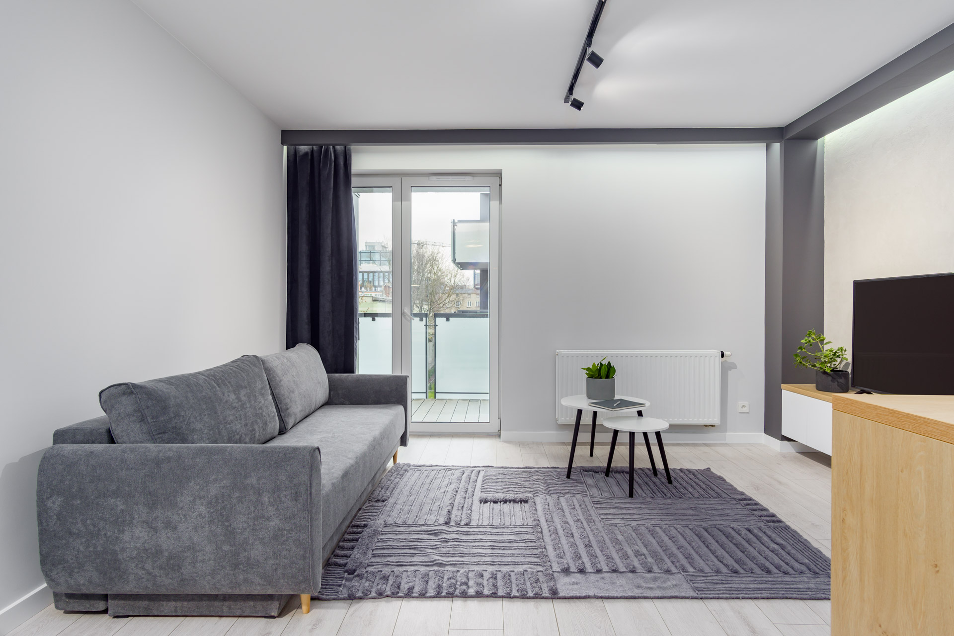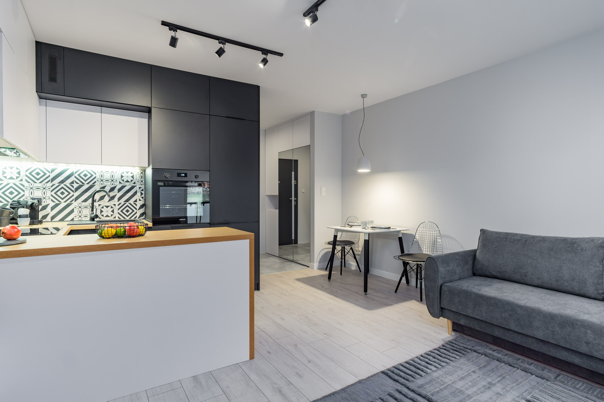 – Przestronna kawalerka urządzona w nowoczesnym stylu,